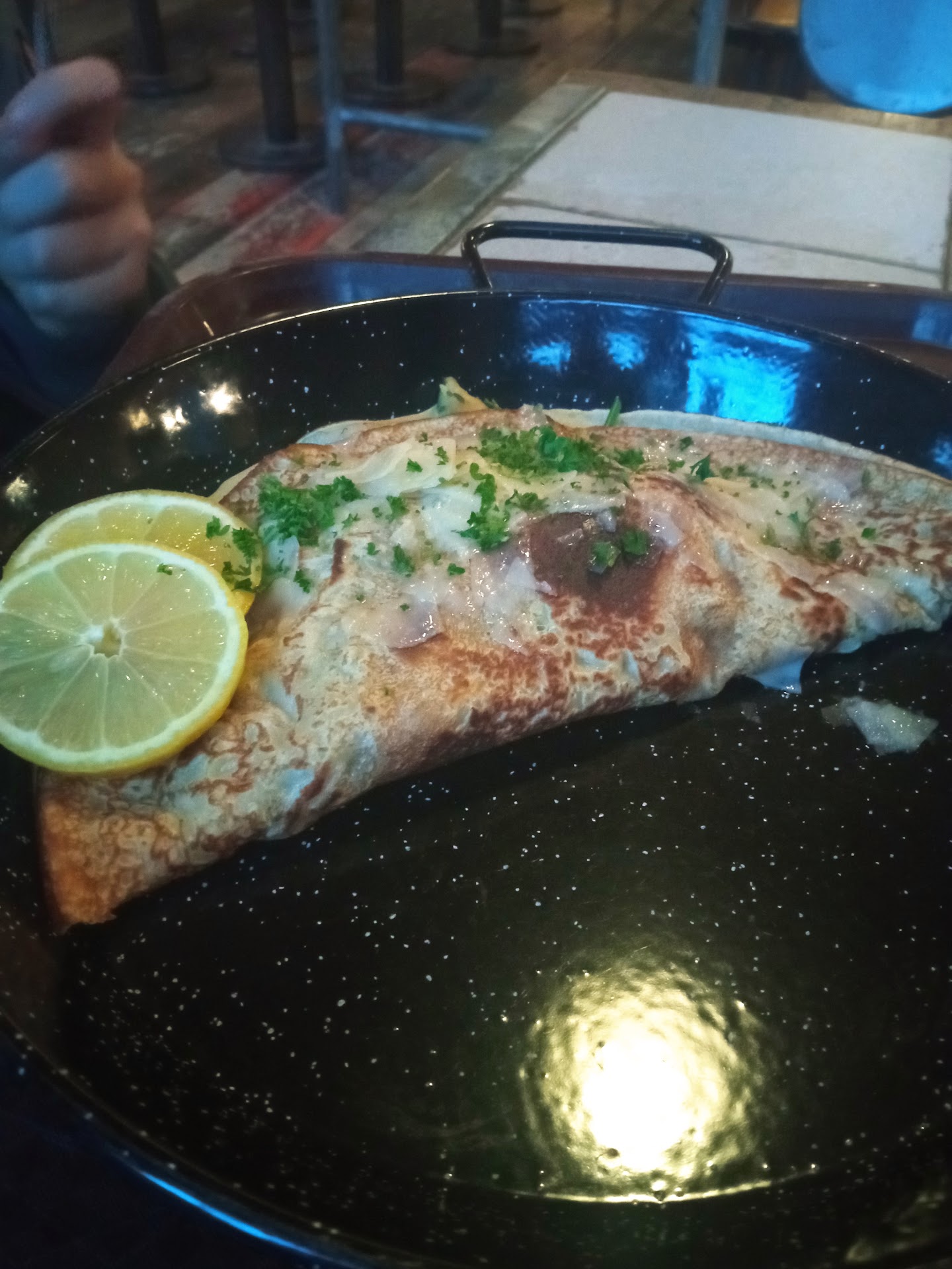 Read moreNaja. Vor vielen Jahren erstmalig einen herzhaften Pannkuchen hier gegessen. Damals mit Liebe und Freude gemacht. Heute den kommerzielle Abklatsch davon bekommen. Wie kann ich mit wenig Aufwand richtig viel verdienen. Pfannkuchen trocken, lauwarm, mit fertig BBQ Sauce gewürzt. Da hat es mich schon beim Geruch geschüttelt. Geflügelstreifen waren Presshuhn, lauwarm ohne jeglichen Geschmack. Einzig der süße Pfannkuchen mit Nussnougat Creme, Marshmallows und Smartie ging so. Maximale süße, naja. Muss man mögen. Der herzhafte für knapp 12€ , der süße für 9,50€. Heftig. Esse ich dort...