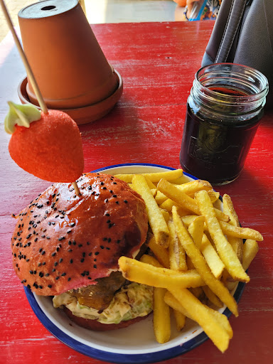 Read moreWir waren zu viert hier, hatten 3 Burger Menüs und eine Portion Süßkartoffelpommes. Die haben wir gleich nach der Bestellung bekommen, für die Burger Menüs einen "Pieper". Weil wir direkt ohne Warteschlange bestellen konnten, habe ich nach min. einer halben Stunde mal nachgefragt, ob der Pieper funktioniert. Mir wurde dann das Tablett überreicht, das ganz an der Seite bereitstand. "Gerade erst fertig geworden" - leide waren sowohl die Burger als auch die Pommes kalt. Ich ziehe dafür nur zwei Sterne ab, weil das Essen sicher sehr gut gewesen wäre, hätten wir es gleich bekommen. Stattdessen wurde ich noch angelogen (gerade erst fertig), dafür ziehe ich jetzt noch einen Stern ab. Vergessen, uns zu benachrichtigen kann wohl passieren. Man muss dann aber zu seinem Fehler stehen und z.B. zumindest frische Pommes anbieten. Dafür hätte ich volle Punktzahl gegeben - sehr schade, zumal das der letzte Eindruck eines sonst sehr gelungenen Tages auf dem Erdbeerhof war und der sehr zufriedene Eindruck daran Schaden...
