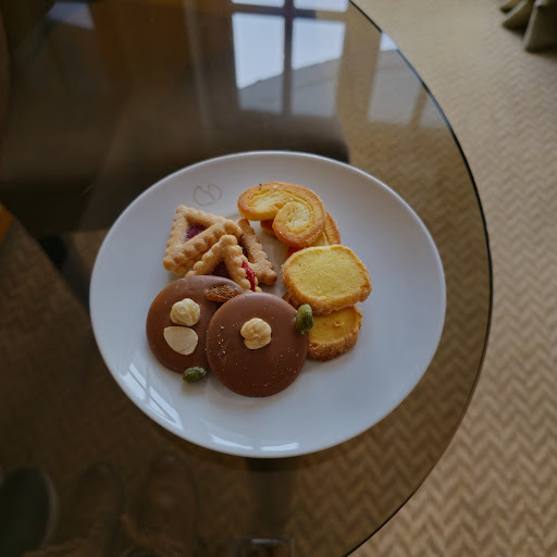 The restaurant is a bit disappointing. Ok, the food was good, and the cheeses remarkable, but there was something joyless about the experience. I'd have expected a little more variety, and fresh seasonal vegetables at these prices. Competent, but not special. Rather 'up itself' to be honest.