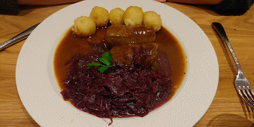 Das Essen selber war lecker und alle extra Wünsche wurden auch umgesetzt. Das Schnitzel war toll, schön dünn und lecker paniert, die Rouladen schmeckten fast wie bei Oma und auch die Knödel dazu waren extrem lecker.