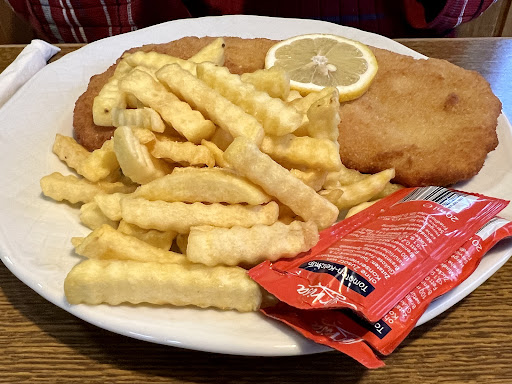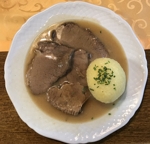 Read moreWir kamen heute wegen der insgesamt recht guten Bewertungen hierher ins Gasthaus Linde, auch genannt "zum Bromm". Der Empfang in der rustikalen Gaststube war freundlich, die Getränke wurden schnell serviert. Na ja, der Tischläufer hatte Flecken, die haben wir ignoriert. Die Karte ist recht umfangreich, überwiegend sind fränkische Spezialitäten, aber auch Zusatzangebote wie Ente, Kotlett oder Jägerschnitzel im Angebot. Der Sauerbraten war geschmacklich in Ordnung, aber das Fleisch war leider zäher als zäh. Zum Glück hatte ich unsagbaren Hunger und gute Zähne :-) Ebenso war auch das Schnitzel leider kaum zu zerkauen. Die Beilagen, Pommes bzw. Klos, waren sehr gut, der Beilagensalat ist eher Geschmacksache. Überzeugen kann das Gasthaus Linde freilich beim Preis. Zwei Essen mit Salat und zwei Getränke für knapp über 30€ sind unschlagbar. Aber wir hätten gerne ein paar Euro mehr ausgegeben und würden sagen, hierher kommen wir...