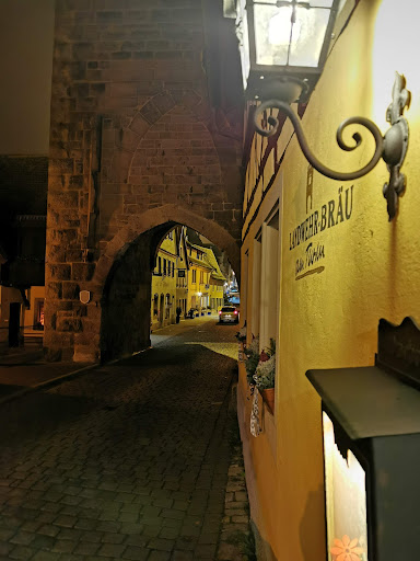 Read moreAfter dinner, we headed to the cozy Landwehr-Bräu pub for a drink. The pub was close to our hotel, just past the Siebersturm tower on the main street near the Plönlein. Inside, it was already quiet as the time approached 11 PM, but we wanted to enjoy the warm summer evening on its charming, small outdoor terrace right next to the castle wall.