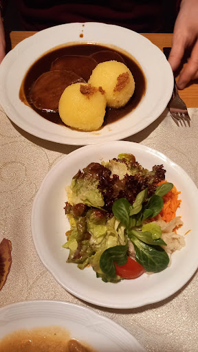 Read moreWar mit meiner Frau dort essen. Bedienung war zuvorkommend wir haben sofort einen Platz bekommen, irgendwie haben wir uns aber nicht wohl/willkommen gefühlt, kann aber nicht definieren warum. Nach der Bestellung war das Essen sehr schnell auf dem Tisch. Meine Frau hatte eine Kürbissuppe als Vorspeise, diese war lecker und selbst gemacht. Als Hauptspeise gab es Sauerbraten und Braten. Als die Teller abgeräumt wurden, wurden wir gefragt ob alles in Ordnung war. Meine Antwort war das ich vom Sauerbraten enttäuscht war. Die Gegenenantwort war, habe heute schon 10 mal gehört das er gut ist und ist gegangen. Hätte schon erwartet wenn jemand sagt das es nicht gut war, dass man sich erkundigt warum. Stadessen zu sagen andere fanden es gut und zu gehen finde ich nicht akzeptabel. Hatte nicht mal Gelegenheit meine Kritik zu äußern, nun eben auf diesem Weg. Auf dem Teller vom Sauerbraten waren drei Scheiben Fleisch, zwei Klöße und Soße das wars keine Preiselbeeren oder Blaukraut nix hatte ich noch nie und ich esse für mein Leben geren Sauerbraten. Einfach lieblos. Man hätte es so essen können aber die Soße hat das Gericht zerstört, die war nicht nur leicht sauer, was beim Sauerbraten so gehört, sonder ging bereits ins bittere und hatte einen sehr unangenehmen Nachgeschmack. Gut das ich was zum trinken hatte. Der Teller mit dem Braten war genauso lieblos, Fleisch, Kloß, Soße und fertig, geschmacklich kein Erlebnis aber ok. Einfach nicht schön. Haben dann schnell das weite gesucht und auf einen Nachtisch verzichtet, dass Restaurant wird uns nicht mehr von...