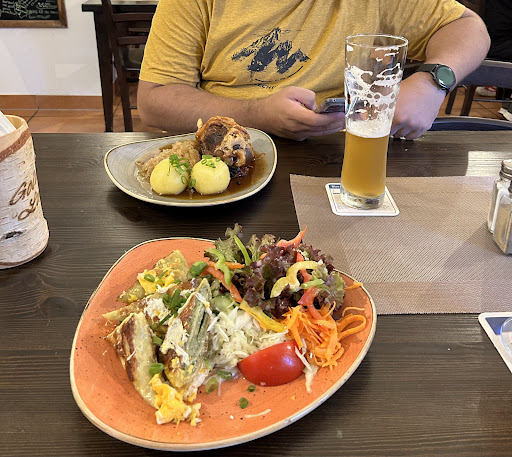 Read moreWe went to eat here when we arrived at Rothenburg ob der Tauber. It was one of the few restaurants still working at that time and we were hesitant to go because of the low reviews. But I’m glad we went as in the end it was the best food we had here during our entire stay. We had a nice breakfast at some other restaurant but for the main course this was the best we had. Why, because compared to the price and taste of the food and what you get, it definitely is the best balance. They have Landwehr-Bräu Hell on tap. I really enjoyed that beer during our stay. We had pork knuckle with potato dumplings and veggie-sausage dumplings with salad. It was nicely done,heartwarming. We waited for our food for around 20min and had our beer till we waited. The entire restaurant is more like a big local diner than a restaurant per se. All in all if you are traveling on a budget and want to try out local dishes,be sure to...