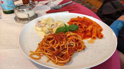Read moreInsalata Capricciosa war ok. Gutes Joghurtdressig und durchgehend angemacht. Leider war es nur Eisbergsalat als Blattsalate. Salami, Schinken, Tomate und Gurke. Zwiebeln und Oliven hatten gefehlt. Das stellten wir erst gegen später fest. Die Tris di Pasta waren austauschbar. Irgendwie etwas belanglos. Die Rigatoni dabei etwas sehr al dente! Die Pizza Diavola war eigentlich, gelinde gesagt, ein einziger Jammerlappen. Der Teig schmeckte nach nichts und war am Rand nur noch Mächtig. Das Sugo konnte da auch nichts machen, da selbst sehr schwächlich. Der Boden war einigermaßen dünn aber eher ledrig. Allerdings war die Pizza angenehm groß. Das Haus war sauber und gepflegt und wir wurden freundlich empfangen und umsorgt. Aber das hilft...