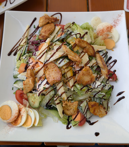 Read moreDer Gastwirt ist sehr nett. Wir saßen auf der schönen Sonnenterrasse und das Essen kam recht flott. Der Capriciosa Salat war riesig und sehr lecker mit Knoblauch-Pizzabrot ein Genuss. Die Spaghetti Napoli meiner Freundin mit selbstgemachte Tomatensoße köstlich! Super Lage mit Parkplätzen und ruhig. Eine Empfehlung...