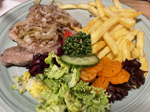 Read moreHin und hergerissen zwischen voller Punktzahl und einem Stern Abzug. Angemessen wären 4,5. Das Essen war lecker, aber die Pommes und Bratkartoffeln für unseren Geschmack nicht kross genug. Darüber hinaus hat es von Bestellung bis Servieren über eine Stunde gebraucht. Okay, die Gaststube war proppe-voll - vielleicht lag es daran. Absolut überraschend und vorbildlich war die Höflichkeit des Service. So warmherzig sind wir noch nirgends empfangen worden. Wir kommen wieder und dann gibt’s vielleicht auch den 5. Stern. Wir sind gespannt! Sehr fair sind die Preise. Ein Abendessen für 3 Personen inkl. Getränke für 40 Euro - das kann sich sehen lassen!!!