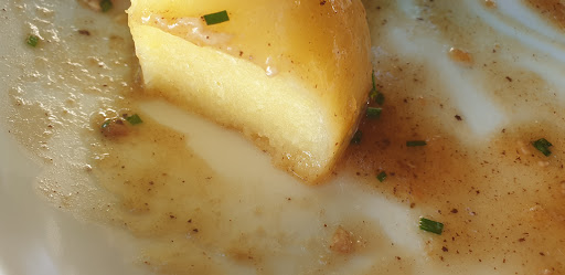 Meine Frau hatte einen Salat Teller mit Puten, Dressing ohne Geschmack. Kartoffel Salat auf dem Teller so wässrig und ohne Geschmack 1 Stern. ( auch den hatten wir damals - im Foto sieht man schon den Unterschied beim Fleisch ) Geschmack der Schweinebraten Soße 1⭐️ Ich kann mir nicht helfen. Ich hab auch mir extra noch mal die Karte geben lassen. Ich glaube, dass ihr fertig Braten Soße verwendet und das war damals glaube ich nicht so. Traurig ! Wir haben uns dieses Lokal extra aufgehoben für unser letzten Abend und waren sehr enttäuscht heute. 👨🍳 schaut euch meine damalige Bewertung an. Ich hoffe nächstes Jahr habt ihr wieder einen anderen Koch. Übrigens war der junge Mann unserer Meinung nach sehr oft unkonzentriert und stand in der Küche drinnen um Zeit zu vertrödeln und das kauen von Kaugummi während dem bedienen und reden kommt nicht gut. Die 3 Sterne für den guten Service sind nur für die junge freundliche Osteuropäische...