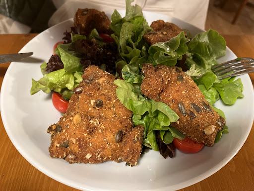Read moreEine wunderschöne Aussicht kann man im urigen und sehr schön hergerichteten Biergarten genießen. Das Essen: Meine Wenigkeit hatte ein "Bayerisches Cordon Bleu" Meine Frau einen gebeizten Lachs.
