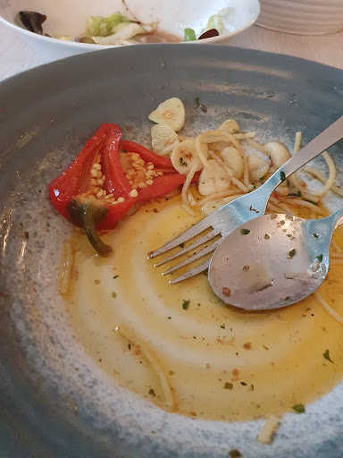 Read moreDas Essen hat satt gemacht, mehr aber auch nicht. Bestellt wurde 1x Spagetti Aglio Olio und 1x Napoli...Beide Gerichte sollten mit Knoblauch sein....leider hatte der Koch oder die dafür zuständige Küchenhilfe keine Lust die Zutaten klein zu schneiden....die Tomaten waren nur halbiert, die Peperoni mit Kernen ebenfalls nur halbiert und mit Strunk !!! und der Knoblauch war auch in sehr dicken Scheiben...ist wahrscheinlich Geschmackssache, aber ich kenne die Zubereitung so, das diese Zutaten kleiner/ feiner gehackt bzw . geschnitten sind. Sah und schmeckte jedenfalls nicht nach feiner italienischer Küche. Der dazu bestellte kleine Salat schmeckte durch das Dressing auch nur nach Essig. Preise hingegen waren okay...Ambiente bestand aus viel Plaste Schnickschnack.. Wir würden nicht wiederkommen, da es bessere Lokalitäten im Ort gibt (die teilweise auch die selbe...