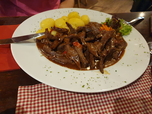 Read moreEin kleines Lokal gleich gegenĂŒber meines Hotels, neben den Klassikern ist man auf ungarische KĂŒche aus. Das ist mal was neues. Innen haben wir alte Holztische und Sessel. Die Deko im Lokal sieht aber nett aus, wie z.B die getrockneten Paprika, welche von der Decke hĂ€ngen. Im freien kann man auch sitzen, ist dann aber direkt an einer viel befahrenen StraĂe. Aufgrund der zahlreichen Bewertungen, welche eine Reservierung empfehlen, habe ich dies gemacht. Es erweist sich als unnötig. Okay, die FuĂball-EM fĂ€ngt heute an. Da habe die Germanen keine Zeit zum Essen gehen.