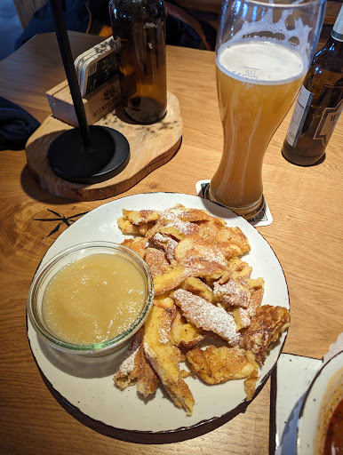 Wie hatten Kaspressknödel in Brühe und ein überbackenes Brot. Der Nachbartisch hat 10min nach uns bestellt und prompt Knödel bekommen... Der Brot kam dann auch im Anschluss, nur unsere Knödel haben sage und schreibe eine halbe Stunde auf sich warten lassen, obwohl kaum etwas los war. Zudem stellte die Servicekraft einfach den Teller ab, ohne Hinweis auf die fehlenden zwei Gerichte oder gar Besteck bereit zu stellen. Am Ende waren die Knödel dann auch alles andere als lecker, eher fest und trocken. Die Brühe roch nach Kartoffelschalen und verbrannten Zwiebeln... Sorry aber welcher "Koch" schickt soetwas zum Gast? In Summe ziemlich unterirdisch und auf die Kritik wurde auch nur mit...