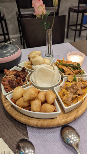 Read moreEin klein wenig entäuscht war ich schon . Ich dachte das Koreanische Essen hätte ein paar neue Aromen für mich zu bieten. Es hat aber geschmeckt wie bei jedem Asiaten. Vllt lag es aber auch am Gericht. Was aber dem Geschmack ansich keinen Abbruch getan hat . Das Essen war großartig. Die Preise hingegen geben sich eher bescheiden, in Anbetracht der tollen Qualität. Die Portionen sind dabei echt groß. Ich hätte mich schon nur mit Vorspeisen satt essen können . Wir hatten echt leckere Suppen und meine Frau hatte Kimchi, eine echt feurige Angelegenheit. Ich hatte als Hauptgang einen Topf mit 4 Sorten Fleisch (S3) in dem sich Fleisch und Gemüse die Wage hielten, super lecker . Wenn es das Wetter zu lästig sollte man unbedingt ein Tisch draußen reservieren. Man sitz dann unter einem natürlichen Blätterdach, das einem schön Schatten spendet . Die Bedienung so d echt net und zuvorkommend. Ein ganz...