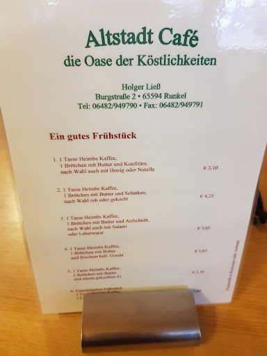 Read moreWar öfters schon mit meiner Frau in Runkel und haben dieses Kaffee besucht, Kuchen und Kaffee sind ok. Aber nach dem heutigen Vorfall werden wir dieses Kaffe nicht mehr aufsuchen. Wir haben mit unserem Enkelkind bei dem schönen Frühlingswetter einen Besuch in Runkel unternommen, waren erst an der Lahn, in der Nähe der Brücke, wo sich unser Enkelkind ein Eis aus der dort befindlichen Eisdiele gewünscht hatte, sie bekam eine Portion mit einer Waffel. Nach einem kurzen Spaziergang beschlossen wir, in das Kaffe (Altstadt-Café) an der Burg zu fahren, um Kuchen und Kaffee und eine heiße Schokolade, zu uns zunehmen. Nach unserem Eintritt in das Kaffee, wurden wir von einem Bediensteten, wahrscheinlich der Besitzer, angefaucht, das es nicht ginge, das unser Enkelkind ihr Rest Eis, in der Tüte, im Kaffee fertig essen dürfte. Solch eine Unverfrorenheit habe ich in einem öffentlichen Kaffee , oder Restaurant noch nie erlebt. Wir drehten uns auf dem Absatz um, verließen dieses Kaffee, fuhren nach Diez in ein Kaffee und verzehrten dort unseren Kuchen mit Kaffee und für unser Enkelkind, die...