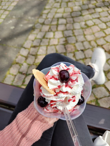 Und wenn man jetzt bedenkt das man insgesamt 9 Kugeln Eis geholt hat für einen Rechnungsbetrag von 20€ ist das ziemlich happig , eine Kugeln Eis kostet dort 1€ daher wären eigentlich die 9 Kugeln Eis 9€ bedeutet für ein bisschen Sahne und drei kleine waffelsticks haben wir 11€ bezahlt. Was meiner Meinung nach nicht in Relation steht.