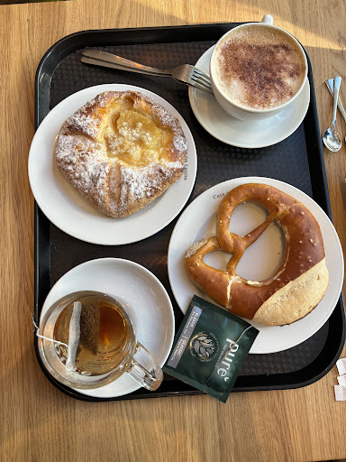 Read moreRead moreWaren heute dort Kaffee trinken: es gab entkoffeinierten Latte Macchiato und Cappuccino und einen super leckeren Mandarinenkuchen - echt zu empfehlen. Warum die Bewertung nur 3 Sterne von mir bekommt ist, dass Tasse, Glas und Gabel sehr unsauber waren. Das Glas anzufassen war echt eine Überwindung. Was mich auch gewundert hat (mit eigener Erfahrung vom Bäcker), die Bedienung hatte lange rote Fingernägel. Auch nicht wirklich hygienisch. Für die Toilette musste man leider Treppen steigen. Einen Lift für Gehbehinderte oder Kinderwägen haben wir leider nicht nutzen können. Das Sitzen war okay. Wir suchen und nächstes mal was...