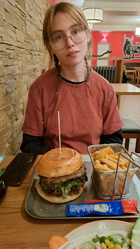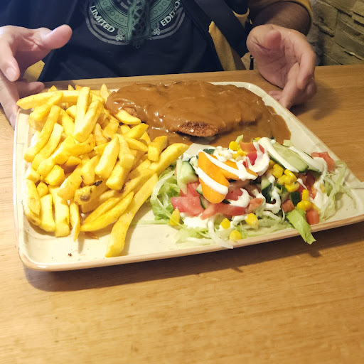 Read moreDas ganze Restaurant hat eher den Charme einer Vorstadtkneipe als den eines Restaurants. Wenn man aber sonntags um halb drei etwas Essbares sucht, ist in der Umgebung die Auswahl doch recht dürftig (verständlicherweise). Die Karte ist recht überschaubar, was allerdings eher positiv zu bewerten ist. Es gibt eine kleine Auswahl von Burgern und Steaks sowie diversen Beilagen wie z.B. Pommes, Süßkartoffelpommes, Pommes Twister. Möchte man zu seinem Burger dann die Twister bestellen...nope, beim Burger sind schon Pommes dabei...Warum kann ich hier nicht selbst wählen? Ok, dann halt BBQ-Burger mit Pommes. Nachfrage ob Medium oder durch - Fehlanzeige. Für einen Burger hat die Bstellung dann doch recht lange gedauert. Dann wurde aber auch klar, warum die Frage bzgl. des Gargrades nicht kam. Das Patty ist so dünn, dass man es unmöglich medium braten kann. Was ich jedoch noch schlimmer fand, war die Scheibe Käse auf dem Burger. Als ich dies reklamierte, wurde mit mitgeteilt, dass man immer Käse auf die Burger packe... Vorsichtshalber habe ich nochmal in die Karte geschaut...kein Käse. Wenn man den immer drauf packt, bekommt man dann bei einem Cheese-Burger automatisch doppelt Käse? Ich finde es jedenfalls unmöglich, denn es gibt Leute wie mich, die Käse ekelhaft finden. Wenn dann der reklamierte Burger nach nur einer Minute ohne Käse zurück kommt, weiß man ja auch, was da passiert ist. Nur um das einzuordnen...ich ekele mich vor Käse und den Käse einfach nur herunterzunehmen ist für mich das gleiche wie den Patty abzuklopfen nachdem er in den Dreck gefallen ist. Ich hätte hier schon einen neuen Burger erwartet. Na ja, zumindest die Pommes waren ok. Alles in allem eine ganz schwache Leistung. Ich bin ganz froh, nicht aus der Region zu kommen, so komme ich wohl nicht mal versehentlich...