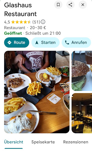 Read moreHallo, wir waren am 20.05.18 mit einer Gruppe von 14 Personen im Glashaus angemeldet und die Speisen waren bei 12 Personen auch schon 2 Tage vorher durchgegeben worden. Soweit so gut! Dauer bis das Essen kam: 1,45 Std.!!! ; Bedienung: Note: 5- ; Essen: 1-2 . Resume: Essen gut bis sehr gut, aber wem ist das nach dieser Zeit des Wartens und dieser Bedienung...
