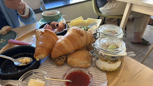 Was für ein wunderbares Café, das gleichzeitig glücklich und satt macht! Wir kamen zum spontanen Frühstück vorbei, hatten uns aber im Vorhinein nicht groß über den Ort informiert. Schon der Empfang durch die Inhaberin war sehr freundlich. Wir wählten einen schönen Fensterplatz, auf gemütlichen Stühlen. Die Einrichtung ist schlicht und ordentlich gehalten mit einigen sehr schönen farblichen Akzenten. Bei den vielfältigen Frühstücksoptionen kann man der Qual der Wahl zuvorkommen, indem man sich zum europäischen Frühstück äthiopisches Highlights dazubestellt. Unser Favorit war der Joghurt mit Haferflocken, frischen Früchten und einer köstlichen, selbstgemachten Kiwi-Marmelade. Der Preis ist sehr fair. Brötchen, die übrig geblieben sind, haben wir als Wanderproviant belegt und mitgenommen, wofür uns eine extra Tüte zur Verfügung gestellt wurde. Im Laufe unseres Urlaubs werden wir hier sicherlich noch einmal vorbeikommen und auch die tolle Kuchenauswahl...