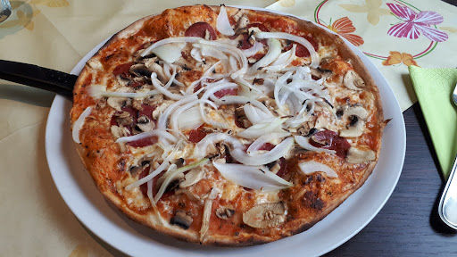 Read moreZunächst das Gute: die Pizza Caprese war sehr schön belegt und sehr gut! Mein Salat "Chef" war "okay" aber: Karottensalat aus dem Glas obendrauf - GEHT GAR NICHT (vor allem wenn man den Salat mit Essig/Öl bestellt...eine Beleidigung für jedes gute Olivenöl). Weder Salz/Pfeffer noch Essig/Öl wurde zum Tisch gebracht (nach einigen Gabeln war von allem nichts mehr zu schmecken). Wartezeit: bei wenigen Tischen knapp 1 Stunde Wartezeit aufs Essen geht noch gerade so - geschuldet der 4 Fahrten mit dem Pizza-Taxi. Ich denke, Gäste im Restaurant sollten Vorrang haben vor allem wenn für eine Flasche Gerolsteiner 0,75 ganze 7 € (!!!, hierfür bekomme ich 28 Flaschen Mineralwasser besser als Gerolsteiner) aufgerufen werden. Hierfür würde ich dann schon im Außenbereich eine Tischdecke erwarten. Hinweis für den netten Kellner, der kein Deutsch sprach: Frascati ist NICHT dasselbe wie Pinot Grigio. Nur EIN offener ital. Weißwein (Frascati, 0,25 l für 6,50 Euro) ist für ein ital. Restaurant ein Armutszeugnis. FAZIT: werden künftig auch das Pizza-Taxi bemühen und zwar nur mit Pizza - Pinot Grigio etc. haben wir...