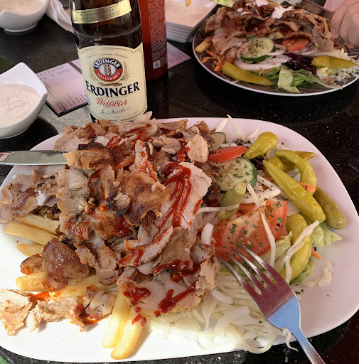 Отличное заведение где подают шаурму и шницели, а также пиццу. Шаурму и пиццу не пробовал, но заказывали три разных шницеля с разными гарнирами и салатами всё было очень вкусно можно взять с собой на вынос предоставляют в контейнерах, также есть разные добавки которые можно заказать прямо на месте их видно под стеклом. Мясо нежное, специи средней остроты и можно даже сказать лёгкие, вполне классические блюда подпадающие под категорию мяса с овощами. Все три купленных шницеля понравились. Могу рекомендовать к употреблению, ценовой диапазон от 10 до 15 евро можно купить неплохой...