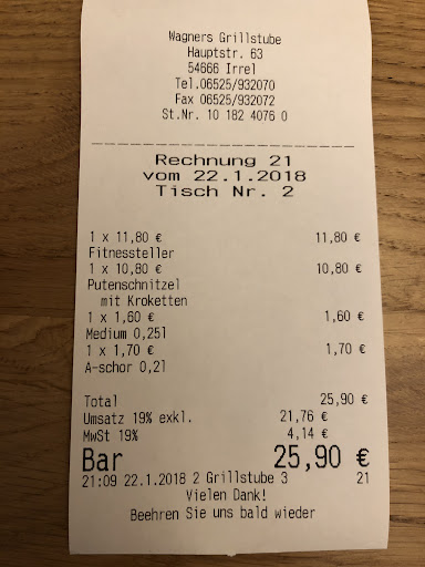 This was my first time eating the well-known pork Schnitzel in Germany. I had a long day and I was so tired. I really enjoyed my food which was brought with salad and fries (called Pommes in Deutsch). I really enjoyed my meal. I had a beer as well, a Bitburger which comes from Bitburg 20 kms away from this small village. The beer was super good. I suggest it if u want to spend about 25...