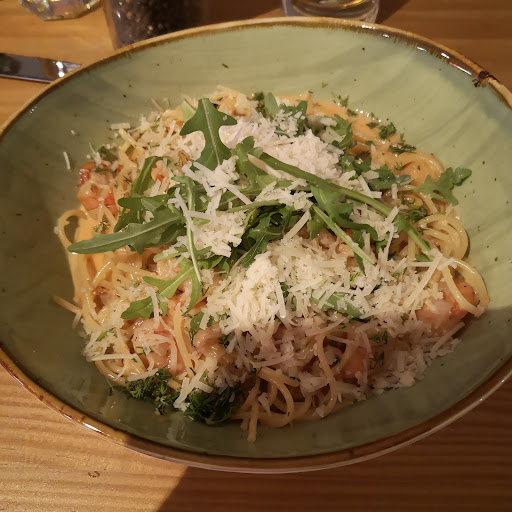 Wir waren letztens dort zum Essen wieder mal. Corona bedingt, nach längerer Zeit. Die Gaststätte hat ihr Angebot komplett auf italienische Küche umgestellt (wenig Fleischgerichte, sehr nudellastig), was ich wertneutral bewerte. Die Preise sind sehr stolz. (Vorspeisen können schon bis knapp 12 € zu Buche schlagen z. B.) - OK, Qualität hat ihren Preis. Die Anreichung der Gerichte war an sich sehr gut gemacht und am Geschmack gab es soweit nichts groß auszusetzen... Aber: (ich muss dazu sagen, ich ging mit wirklich leerem Magen dorthin). Mein erster Gedanke, als der Teller serviert wurde, war: "Wo ist der Rest?" Ich gehe oft essen und im Vergleich zu einem z. B. rustikalen Restaurant oder Griechen war die Portion für einen ausgehungerten Mann, naja sagen wir mal, sehr ambitioniert. 3 wirklich kleine Fleischstückchen und 3 halbe Kartöffelchen umschmiegten sich liebevoll um ein Löffelchen Champignonsauce. Wenn viele mir jetzt entgegnen würden: "Warum hast du dir keine Vorspeise bestellt?" Nun, aus den Erfahrungen anderer Essensbegehungen ist man ja oft vom Salat schon gut vorgesättigt. Daher wollte ich nur ein ordentliches Hauptgericht. (bei 20-25€ sollte Das schon möglich sein) Übrigens: es gab auch Pizza. Hmmm, aber Pizza hole ich mir dann doch lieber in einer Pizzeria als... psst für 12-13€ in einem noblen Restaurant. Pommes z. B finden Sie hier leider nicht.. 'ist ja auch ein Italiener geworden ☺️'. Das ist wichtig für Besucher mit kleineren Gästen,welche eventuell Schwierigkeiten haben könnten, etwas Passenden für den Nachwuchs zu finden. Ach ja, die Pizza ginge.. Nun ja.. Kurzum, ich komme zum Schluss: Ich kam mit hungrigen Magen. Habe im netten Ambiente recht gutes Essen verspeist und freute mich zu Hause auf... 2 leckere Würstchen...