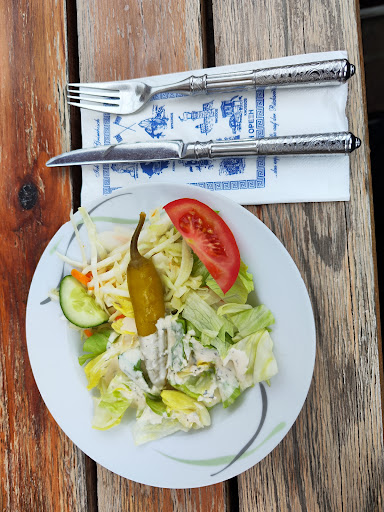 Read moreHeute zum ersten Mal hier gewesen kurz vor 17 Uhr ohne Reservierung. Trotzdem einen Platz draußen bekommen. Nach einer langen Tour mit dem Rad ordentlich Hunger mitgebracht. Super netter Empfang, schnelle unkomplizierte Aufnahme der Bestellung. Gleich zu Beginn einen gratis Ouzo - eiskalt und lecker YAMAS 😃👍 Ein Salat vorweg ließ nicht lange auf sich warten. Sehr lecker. Dann kam meine Leber mit Zwiebeln, Reis, Pommes und Tzatziki.... was soll ich sagen: Essen war zügig am Tisch, reichlich und schön präsent und dermaßen lecker, dass ich vergessen habe vor lauter Hunger Fotos zu machen 😂 Ich möchte fast behaupten, dass es die beste gegrillte Leber war die ch jemals im einem griechischen Restaurant gegessen habe 👍😍 Die freundlichen Servicekräfte fragten ab und an mal nach, ob alles ok sei... Alles bestens!! Vielen lieben Dank. In der guten Stunde in der wir dort waren füllte sich die Location bis auf den letzten Platz. Zu keiner Zeit hatte man das Gefühl, dass jemand im Stress ist - alles entspannt, immer freundlich.... Bin wirklich sehr angenehm überrascht über den heutigen spontanen Aufenthalt in einem mir völlig unbekannten Restaurant - TOP Erlebnis heute - sehr empfehlenswert. Ach ja und der Preis: 😃👍 echt günstig für das hier präsentierte leckere...