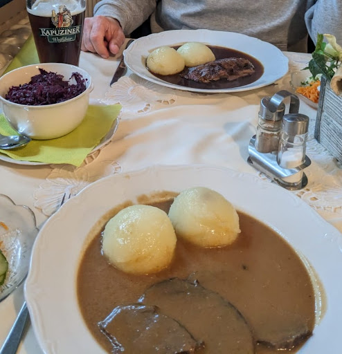 Die Köchin hat hier ganze Leistung gezeigt. Das Essen war sehr gut und viel. Hatten Braten und Gänsebrust bestellt. Jede Soße war perfekt. Keine Einheitssoßen. Das Fleisch und die Gans waren perfekt und die Klöse so wie sie in Thüringen sein sollen. Wobei ich eher die Groben mag. Auch der Salat hatte ein sehr gutes Dressing gehabt. Also wenn das komplette Essen noch anders Präsentiert würde, mit weniger auf dem Teller, dann hätte es sogar in einer gehobenen Gastronomie angeboten werden können.