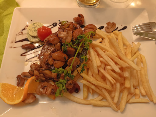 Wir waren als Gruppe zusammen essen. Wir hatten Reserviert und sind auch schnell zu unserem Tischen geführt worden. Leider ging es, dann schon los. Ja... Es war Samstag gegen 18.40 uhr. Es war etwas mehr los. Trotzdem finde ich es nicht akzeptabel, dass wir für die Karte allein schon sicher 15 Minuten warten mussten. Bis unsere Bestellung aufgenommen wurde, dauerte es gut nochmal 10 Minuten, selbes Spiel bis wir unsere Getränke hatten und dann irgendwann unser Essen bestellt werden konnte. Ab da wurde es dann echt inakzeptabel. 2 unserer Gruppe hatten Vorsuppe bestellt. Die kam erst nach 20 Minuten. Ca. 15 Minuten später kam dann die Salate zu manchen Speisen . Dann dauerte es sicher nochmal fast 15 Minuten, bis endlich alle Hauptspeisen serviert worden. Sprich, vom hinsetzen, bis Servieren der Hauptspeise waren es locker 1 1/2h. Das geht nicht. Wir waren zwischenzeitlich schon am überlegen, ob wir gehen und woanders vielleicht noch Plätze bekommen. Mein Essen selbst war richtig gut. Mein Fleisch perfekt, die Pommes zwar typische Metro Ware, aber damit konnte ich leben. Meine Kollegen dagegen waren nicht so glücklich. Die Bratkartoffeln waren zu fettig und teilweise zu lang gebraten. Vieles war schon lauwarm, die Klöße definitiv nicht hausgemacht, Rotkraut nicht frisch usw. Schade bei den Preisen. Als wir dann gegen gegen 21.30 uhr gern noch ein Dessert wollten, hieß es, die Küche ist schon dicht. Obwohl Öffnungszeiten bis 23 uhr sind. Eis könnte man uns aber notfalls noch machen. Wir haben dann einfach noch Schnaps als Absacker bestellt und da wurde es, dann chaotisch und schlimm. Wir bestellten zum Teil doppelte, die uns auch berechnet wurden und bekamen aber nur einfache auf den Tisch. Ich bestellte nen einfachen, der einfach Doppelt kamund auch berechnet wurde, was ich aber zu spät bemerkt hab. Auch beim Essen hatte ich schon die falsche Größe beim Getränk bekommen, dachte aber dann, okay...trinkst du bestimmt eh aus. Dann kam beim bezahlen die Diskussion, weil der Kellner aich nicht mehr da war, der die Fehler machte. Meine Kollegen haben ihren doppelt berechneten Schnaps angerechnet bekommen. Ich musste natürlich zahlen, weil ichs zu spät gemerkt hab. Für mich einfach ein No Go. Ewig lange Wartezeiten, falsche Bestellung und obwohl bis 23 Uhr auf sein sollte, wurden wir durch Gesten und lautstarkes Aufräumen gegen 22 Uhr regelrecht raus geschmissen. Auch wenn mein Fleisch wirklich gut gemacht war, war das mein letzter Besuch. Ich hab mehr zahlen müssen, als das was ich bestellt hab. 🙅🏼♀️ Ich musste die Fehler der Belegschaft ausbaden. Kein...