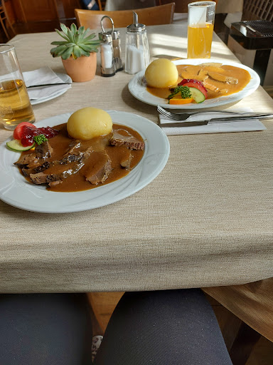 Read moreDas Hotelrestaurant aus dem Jahr 1835 befindet sich in einem kleinen Weiler mit ausreichend Parkmöglichkeiten auf der anderen Seite (und einem kleinen vor dem Hotel). Begrüßung auf Englisch durch den Chef (der meine Reisetasche im 1. Stock trug); (Ein Server spricht auch Englisch); Ich kam Sonntag um 13 Uhr an und sah die Anzahl der Autos, das Restaurant muss bekannt sein! in der Tat fast vollständig und nicht reserviert, setzte der Chef mich mit einem Paar ein, das gerade angekommen war. Mittag- und Abendessen à la carte (deutsch oder englisch) mit Spezialitäten und Preisen durchaus erschwinglich: es ist deftig und sehr gut. ; Ich hatte ein komfortables Economy-Zimmer mit einem kleinen Badezimmer.||die zimmer des restaurants sind waldartig eingerichtet (der große wald ist in der nähe, schöner blick auf den parkplatz auf den hügeln in der ferne, um es zusammenzufassen, eine sehr gute erinnerung und das ist für meine nächste tour nach berlin zu merken||||Hôtel restaurant remontant à 1835 situé dans un petit hameau avec un grand parking de l'autre côté (et un petit devant l'hôtel) ; accueil en anglais par le patron (qui a porté mon sac de voyage au 1er étage) ; (un serveur parle également anglais); je suis arrivé dimanche vers 13H et vu le nombre de voitures, le restaurant doit être connu ! en effet pratiquement complet et n'ayant pas réservé, le patron m'a installé avec un couple qui venait d'arriver. Repas midi et soir à la carte (en allemand ou en anglais) avec des spécialités et des prix tout à fait abordables : c'est copieux et très bon. ; j'avais pris une chambre économique confortable avec petite salle de bain.||les salles du restaurant sont décorées façon campagne forestière (la grande forêt est toute proche. Pas de buffet au petit déjeuner mais on peut demander du supplément. Belle vue du parking sur les collines au loin. Pour résumer, un très bon souvenir et c'est à retenir pour ma prochaine...