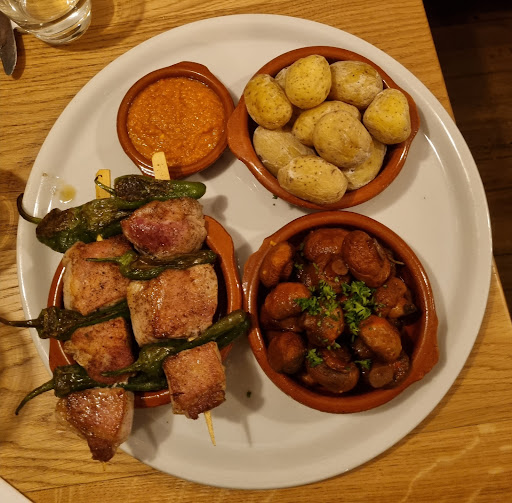 Read moreWir waren nun innerhalb von 2 Monaten zweimal zu viert in diesem spanischen Restaurant in Saarbrücken zu Gast, und haben hier beide Male wirklich sehr lecker Tapas gegessen. Im Gesamten haben wir bei unseren beiden Besuchen viele der angebotenen Tapas probiert, und die Mehrzahl der Tapas konnte uns mit einem individuellen, sehr guten Geschmack bei feiner Würze überzeugen. Grundlegend empfanden wir sowohl die Qualität der optisch ansprechend servierten Tapas, wie auch die Garpunkte vom Fleisch, bisher überwiegend als sehr gut. Jedoch gab es bisher auch wenige Tapas, die wir geschmacklich und qualitativ als nicht gut empfanden, zudem waren bei unserem zweiten Besuch einige der Tapas etwas verkohlt. Einmal wurde uns vorab ein kleiner Gruß aus der Küche serviert. Die einzelnen Tapas sind von so ausreichender Größe, dass sich oft 2 Personen eine Tapa teilen können, was letztendlich den etwas höheren Preis dieser rechtfertigt. Will man sich zu zweit unterschiedliche Tapas teilen, so sind von der Menge her 6-7 Tapas passend. Serviert wurden unsere Tapas bisher in 10-15 Minuten nach der jeweiligen Bestellung, somit kann man hier gut in mehreren Runden essen. Die Getränkepreise sehen wir jedoch teilweise als hoch an. Zeigte sich der Service bei unserem ersten Besuch grundlegend freundlich, aufmerksam und fix, so waren wir bei unserem zweiten Besuch über diesen enttäuscht und auch verärgert. Einerseits dauerte es sehr lange, bis wir beachtet wurden, zudem bekamen wir von unserem Kellner so eine dreiste und freche Antwort auf eine falsch gebrachte Tapa, dass wir uns zu einer Beschwerde im Restaurant genötigt sahen, die leider aber nichts brachte, da der Kellner zugleich der Servicechef des Tages war. Sollte etwas derartiges nochmals vorkommen, werden wir hier nicht mehr zu Gast sein. Im Gesamten ist das Restaurant schön gestaltet und bietet seinen Gästen eine nette Atmosphäre zum Speisen und Verweilen. Aufgrund unseres bisherigen, weitestgehend positiven Eindrucks bzgl. der leckeren Speisen werden wir künftig weiter hier zu Gast sein, einen korrekten Service...