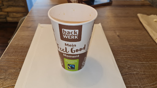 Man mag mir zurecht die Frage stellen, ob ein Besuch bei Backwerk nachhaltig und für den lokalen Fachhandel sinnvoll und förderlich ist. Fair enough! Nun war ich aber mal bei Backwerk und wollte meinen Kaffee nicht aus dem Wegwerfbecher trinken, zumal es für Inhousegäste auch keine Alternative zur ToGo-Verpackung gibt. 🤷🏽♂️ Ich hielt also nach einem Mehrwegsystem Ausschau und wurde auch fündig. Doch dann begann die Misere. Die Becher verstaubt vom langen Nichtgenutztwerden! Ein System, dass von mir den Download einer App, die Einrichtung eines Kundenkontos und das Hinterlegen einer Zahlmethode verlangt. Eine Verkäuferin, die leider völlig überfragt war mit der Vorgehensweise. Zum Glück bot die App mir die komplette Abwicklung an, sodass die Dame von Backwerk eigentlich nichts mehr tun musste. Dennoch war für sie damit noch nicht alles in trockenen Tüchern. Stattdessen musste ich die Ankunft der eigens herbeigerufenen Filialleitung abwarten, die dann nach gut 10 Minuten eintraf und nach kurzer Diskussion mit ihrer Mitarbeiterin den Vorgang absegnete.