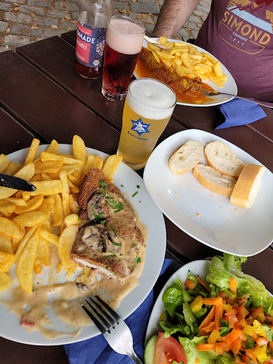 Read moreDie Lage ist super, aber das wars dann auch. Innen ist es eine einfache Kneipe, in der man nur Bar zahlen kann, es keine Speisekarte für die Hand sondern nur and der Wand aufgehängt und keine Quittung gibt, auf der man sehen kann, was die Getränke kosten. Denn die stehen nicht auf der Karte. Das Essen kam sehr schnell, was zwar verdächtig nach Aufgewärmt wirkt, kann ich aber nicht 100% bestätigen. Als ich reinkam, wurde mir weder ein Platz angeboten, noch danch gefragt, wo ich den Sitzen möchte. Mur wurde nur etwas unschön der freie Tisch neben mir gezeigt. Es wurde gleich nach Getränken gefragt, die nirgends stehen, weshalb ich mir stotternd etwas ausdenken musste in der Hoffnung, dass es das gibt. Dem war zum Glück so. Mir wurde dann ein wenig Brot gebracht, das lieblos auf einem Teller samt Besteck lag. Essen war ok, aber es ist halt nicht das feinste. Hatte Spagetti Bolognese. Die waren durch den Käse leider sehr verklebt, aber der eine mags mehr, der andere weniger. Hatte eine sehr große Portion. War nich viel los, bis eine große Gruppe junger Menschen kam. Ich habe das Essen nicht ganz geschafft und als ich es nicht einpacken lassen wollte, weil ich im Hotel übernachtet habe, kam der Satz: "Man kann auch kleine Portion bestellen, ne?" Für die junge Generation: Bombastic Sideye