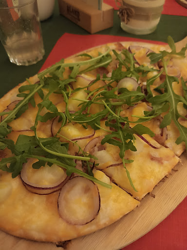 Read moreMixed experience. We had a reservation and got seated right away. It took about 15 minutes after we had decided to get the food order in, since there was only one lady taking order and bringing beverages to the customers. We waited an hour for the food. The Flammkuchen were quite good and the selection on the menu is HUGE. However, my bacon chili Flammkuchen didn't have any chili. It was still a new and interesting flavor combination, but after a full hour wait I really didn't want to send it back. Prices are definitely fair, with about 10€ for a "small" Flammkuchen, which is enough for a moderately...