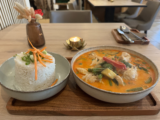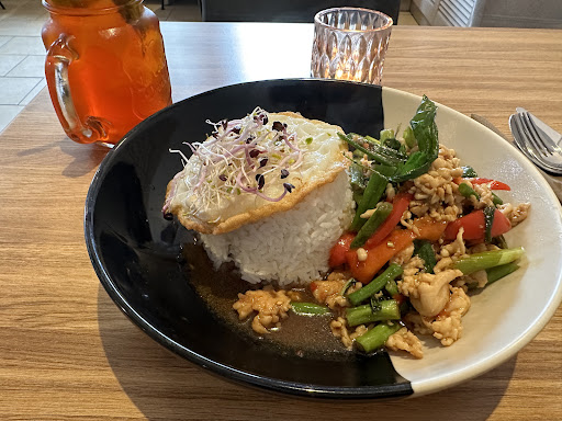 Read moreAuf der Suche nach einem geöffneten Thai Restaurant zum Mittagstisch, bin ich durch Google Maps hier gelandet. Was ein Glückstreffer. Ich habe mich schon beim Eintreten in das Restaurant wohl gefühlt, weil man dort einfach vom Personal wahrgenommen und herzlich begrüßt wird. Bis 12:00 Uhr gibt es eine Frühstückskarte - auch mit typischen Thai Frühstücks-Variationen. Mir war aber mehr nach einem vollwertigen Gericht, so dass ich die Pad Kaprau Gai Bowl und einen Cha Manau bestellt habe. Getränke und Essen wurden sehr schnell serviert. Super frische Zutaten und liebevoll dekoriert. Nicht zu viel und nicht zu wenig. Geschmacklich war es super authentisch. Angenehm scharf und der Eistee, frisch gemacht, super lecker