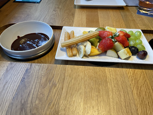 We were a group of 11 people. The server did not want to take the time to explain the concept twice. She made us wait until the whole party was here and placed herself on the other end of the table while other members had to stand up and hear for her instructions. She never asked if we had had fondue before. Just said one can order from the menu, ads on as it goes. Never explained you cannot order meal without the oil or if you order both bowls, how to add an order. When I ordered only fondue without oil shw said, "das fleisch ist roh, Wie kochen Sie es? Dann mussen Sie ol dazu bestellen". Then I said you should have explained that, and not rushed through the whole thing. Then she said twice on two situations,"das weiß doch jeder dufe, dass weiß doch jeder blonde". We should have walked out, but we were in a large group of people who spoke German,Romanian,English and Hindi. And none of us was dumb. We should have walked out, but carried on. The food came after an hour. We waited another 15 mins for the bill. When later a server asked us how the service was, we honestly said the service was rude. The next server kept telling us the waitress was the best part of the restaurant and everybody praised her. He went to say the food was delayed because half of us did not order fondue. No one trusted themselves too after she called me dumb. All of it has left a bitter sensation on our mouths. At least the...
