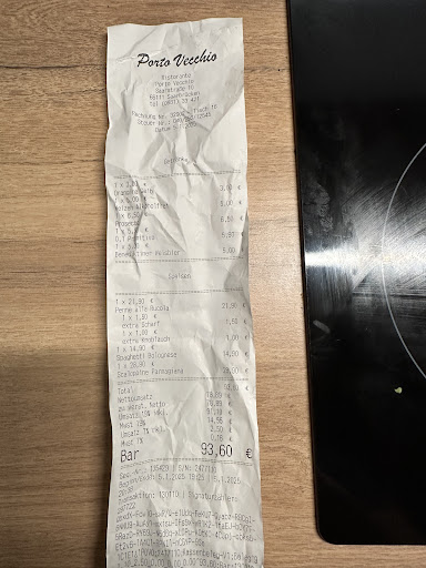 Read moreMeine Frau und ich waren gestern vom Outlet aus Zweibrücken nach Saarbrücken eingekehrt um die Stadt kennen zulernen. Nach mehrstündigem Aufenthalt hatten wir Hunger und kehrten im Porto Vecchio ein. Wir wurden sehr herzlich empfangen und bekamen einen Tisch für 2 Personen in der Außenanlage. Schnell wurden wir nach den Getränken gefragt, diese wurden sehr schnell an unseren Tisch gebracht. Die Speisekarte wurde uns gereicht und wir wurden schnell fündig. Meine Frau bestellte sich Spaghetti Carbonara und ich 1 Filetsteak Filetto al Pfeffersauce medium. Ein freundlicher Gruß aus der Küche waren 2 Stücke. Pizza. Geschmacklicht sehr lecker und ganz besonders hervorzuheben wie fluffig der Teig war. Danach kam der Salat, auch dieser hervorragend mit dem sehr geschmackvollen Dressing. Nun wurde meiner Frau Spaghetti Carbonara serviert. Nach dem ersten Biss sagte sie mir, das wäre das beste Spaghetti Carbonara was sie bis jetzt gegessen hätte. Jetzt freute ich mich schon riesig auf mein Steak, was gerade serviert wurde. Optisch Mega und nun der erste Biss. Meine Geschmacksnerven waren im siebten Himmel. Der Garpunkt war auf den Punkt getroffen. Die leckere Pfeffersoße wahnsinn. Ich bin ein absoluter Steakfreak und dieses Steak werde ich unter meine 10 Favoriten einstufen. Dem Team von Porto Vecchio kann ich nur sagen, ein weiter so, Ihr seit Spitze. An das Küchenpersonal ein ganz großes Lob. Beim nächsten Besuch, leider kommen wir aus der Bierstadt Bitburg, was schon eine Entfernung ist, werden wir ganz bestimmt nochmal als Gast vorbei kommen. Liebe Grüße!...