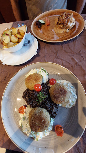 Read moreWaren auf einem Geburtstag dort. Leider draußen traumhafter Sonnenschein und drin kaum Tageslicht und etwas düster (nur die Wirkung, Licht war an und hell genug). Aaaber: super Essen! 2 Menüs wurden extra vegan abgeändert (sogar das Eis) und auch das Buffet so flexibel gestaltet, dass wir mitessen konnten (z. B. Salat mit separater Soße + Veganer Soße zusätzlich). Da habe ich schon ganz anderes erlebt. Ich war wirklich beeindruckt, auch wie "das Auge mitisst", hatte ich "auf dem Dorf" anderes erwartet. Service sehr aufmerksam, freundlich und schnell. Wir (veganen) hatten zu keiner Zeit das Gefühl, eine Belastung zu sein....