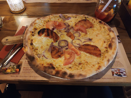 Read moreWir waren gestern zum zweiten Mal innerhalb von 5 Monaten im Donna Mia in Saarlouis zu Gast, und haben hier bei unseren beiden Besuchen wirklich sehr lecker italienisch gegessen. Die ausreichend große Speisekarte bietet eine gute Auswahl an Pizzen und Pastagerichten, zudem einige interessante Vorspeisen, Salate, und wenige, aus unserer Sicht eher uninteressante, Fleischgerichte. Die Auswahl an Weinen ist jedoch sehr begrenzt. Zudem gibt es stets eine Aktionskarte. Die gut belegten, knusprigen Pizzen fanden wir bisher sehr lecker, so hatten sowohl der Teig als auch die Beläge einen richtig guten Geschmack. Auch die bisher getesteten Nudelgerichte haben uns ebenfalls sehr gut geschmeckt, sowohl die in guter Menge beigefügten Zutaten, als auch die Soßen fanden wir wirklich fein und interessant. Der abwechslungsreiche Beilagensalat von guter Größe wird mit einem leckeren Dressing angemacht. Grundlegend werden die Speisen eher schwach gewürzt serviert. Dies wird jedoch in der Speisekarte so angekündigt, und durch eine Auswahl an Gewürzen und Ölen kann man sich diese am Tisch selbst verfeinern und nachwürzen. Die Preise der ausreichend großen und ansprechend servierten Gerichte empfinden wir als passend. Der Service zeigte sich uns gegenüber bisher sehr freundlich, jedoch werden die Speisen aus unserer Sicht manchmal etwas zu schnell aufeinander gereicht. Da die Tischreservierung stets auf einen Zeitraum von maximal 2 Stunden ausgelegt ist, ist dies jedoch so gewollt. Von der Einrichtung ist das Restaurant wirklich schön und modern gestaltet, und bietet, mit seiner bei schönem Wetter nutzbaren Außenterrasse direkt auf dem Kleinen Markt, ein tolles Ambiente zum Speisen. Im Gesamten betrachtet empfehlen wir diese Gastronomie sehr gerne weiter, und kommen selbst auch gerne...