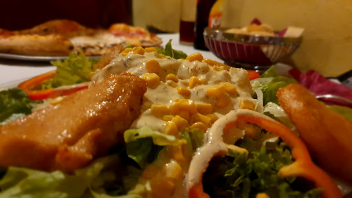 Insgesamt recht große Portionen und günstige Preise. Die Pizzen waren relativ unterschiedlich gebacken von kokel-Rand bis knapp-fertig, aber allesamt gut belegt. Beim Insalata Pollo ist das Hähnchen Natur-gebraten. Ich vermute, alle zusammen in der Friteuse. Die dünneren Stücke waren durchgegart, das eine dickere im Kern wohl deshalb nicht. Leider relativ viele Salatblätter mit "matschigen" Stellen am Blattrand. Da die Portion groß ist, kann man diese Stellen abschneiden und hat immernoch einen großen Salat. War halt nicht so schön fürs Auge. Die anderen Zutaten (Tomate, Salatgurke, Zwiebeln, roter Paprika, etc) waren frisch und knackig. Das Brot ebenso.