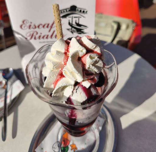 Read moreHandwerkskunst auf hohem Niveau! Dieses Eis schmeckt nach Liebe! Ich bin immer wieder fasziniert, wie schmackhaft das Eis von Rialto ist, vor allem das extra sahnige Fiocco und alle Pistazien Kreationen( ja, es gibt mehrere!). Wir lieben dieses Eiscafé außerdem, weil es hier super leckere Waffeln gibt und Kaffeespezialitäten von Illy Kaffee. Bei jedem Besuch mit der Familie, zaubert mir der "Biene Maja Becher",den sich meine Tochter aussucht, ein Lächeln ins Gesicht und lässt mich an vergangene Tage meiner eigenen Kindheit zurückerinnern. Manch einer mag dies kitschig oder altmodisch finden, aber ich finde genau so muss ein...