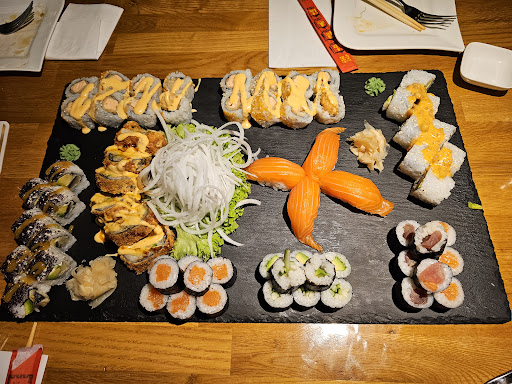 Read moreDie Einrichtung ist rustikal, man kann hier aber gut längere Zeit sitzen. Die Bedienung ist freundlich, man hat aber den Eindruck, dass es manchmal Verständigungsschwierigkeiten gibt. Das Essen ist superlecker. Da hier kein Buffet oder "all you can eat" angeboten wird, haben wir uns zu viert entschlossen, uns diverse Gerichte zu teilen, um möglichst viel probieren zu können. So kamen 2 sehr leckere Salate mit 4 Tellern an unseren Tisch. Danach eine große Platte mit den gemischten Sushi-Rollen. Alle sehr lecker und die Portion war sehr gut bemessen. Wir haben mit 4 Leuten 3 gemischte Teller grade so geschafft. Auch der Nachtisch war sehr lecker. Alles in allem ein schöner Abend mit leckerem Sushi. Wir werden mit Sicherheit...