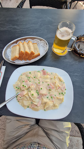 Read moreHatte heute mal Appetit auf Tortellini in Sahnesoße m. Schinken u. Erbsen dazu etwas Pizzabrot. Der Inhaber war schnell zur Stelle und nahm meine Bestellung auf, nach gefühlten 10 Minuten bekam ich mein Essen und es sah zum Reinbeißen aus allerdings gab es kein Pizzabrot dazu sondern selbstgebackenes Kastenweißbrot. Den ersten Happen im Mund und ich hatte keinen Appetit mehr da es sich nicht im entferntesten um Sahnesoße handelte sondern um eine Art Mehl bzw Bechamehlsoße handelte ohne Geschmack und die Tortellini sind billigste Industrieware. Es gibt draußen auf der Terrasse auf den Tischen auch nichts zum Nachwürzen, vielleicht nur auf Nachfrage. Ich bezahlte beim Inhaber der mit Versteinerter Miene und glänzender Breitling Uhr mir die Rechnung übergab und ging.
