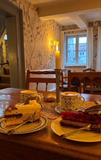 Read moreCharming restaurant which tempts you with cakes and chocolate in display cabinet as you walk through the door. The seating area has a stone floor made from small stone rectangles arranged in a similar way to a parquet floor. We had breakfast which was delicious. Bread buns were fresh, jam was home made and boiled eggs were cooked to perfection. We'll...
