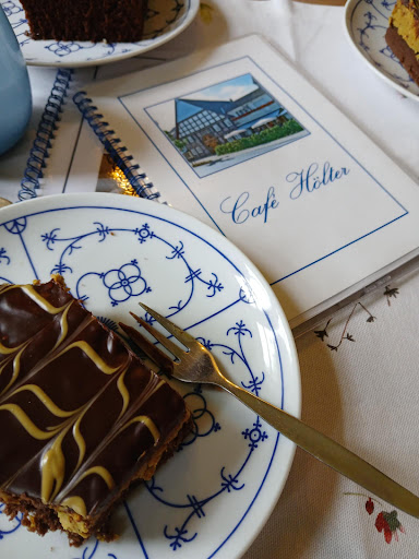 We are relatively new in Germany, and we are still researching places to eat and drink something nice, so we found Café Hölter through Google search as a place that offers cakes and pastries. First, I have to praise the staff, polite, helpful, fast, girls, thank you. Cakes, mmm delicious ❤️ From the cakes we chose: brownies (one of our children is in spectrum, and only likes to eat familiar foods), Dubai cake, and my husband chose fruit cake.. The cakes are, to put it mildly - delicious, the pieces are large, and quite filling. The coffee is excellent, and the children enjoyed the cocoa with whipped cream.
