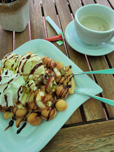 Die beiden Cappuccinos und die Bubblewaffeln waren optisch sehr ansprechend und geschmacklich der Hammer!