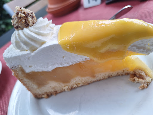 Read moreUnverschämte Bedienung. Es ist voll und die Menschen stehen Schlange, wir kommen nicht von hier und wissen nicht, wo der Eingang ist. Darum standen wir im Weg, worauf und die Bedienung dann sehr unfreundlich hinwies. Wir sollten die andere Türe nehmen und uns anstellen zum Warten. Leider sagte dann die Dame hinter der Theke zu anderen Menschen, die auch warteten, dass diese ebenfalls die andere Türe benutzen sollen und sich dann vor uns stellen sollen (wir waren aber zuerst angestanden bzw. dann an der anderen Türe). Wir gingen nach draußen, setzten uns und die Bedienung sagte nur im Vorbeigehen: hier wird nicht bedient, hier regnets immer. Also stellten wir uns an der Theke an, um Kuchen mitzunehmen. Wir wurden bedient, wir fühlten uns völlig unwillkommen und fehl am Platz, Gastfreundschaft nicht zu finden. Wir sind eine 5köpfige Familie und gehören scheinbar nicht zur Zielgruppe der Ü70-Generation; ob das der Grund war, bleibt rätselhaft. Der Kuchen schmeckte ok, war aber nichts besonderes oder herausragend gut. Bleibt Enttäuschung von einem Café, welches ggf...