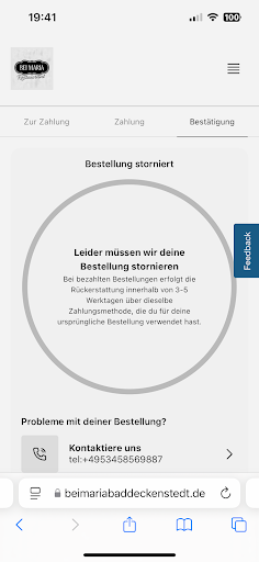 Wir haben heute das erste mal bei Maria bestellt, leider vergebens!! Bestellung wurde 18.28 Uhr (Bild) über das Internet ausgelöst, Bestätigung das unser Essen um 20.12 Uhr geliefert werden soll. (Wir guckten da schon über die lange Lieferzeit hinweg) Um 19.41 Uhr (Bild) kam dann plötzlich eine SMS das unsere Bestellung leider storniert werden muss. Das finde ich schon verdammt Frech uns über eine Stunde warten zu lassen und dann erst zu stornieren. Wir dachten uns dann das wir einfach mal anrufen ob dies ein Fehler ist, was soll ich schreiben das Telefonat war ein Katastrophe. Die junge Dame hatte meines Erachtens gar keine Ahnung und verstand auch nicht wirklich was wir von ihr wollten. Wir fragten dann nach ob wir die Bestellung auch abholen könnten wenn das mit dem liefern nicht klappt, die Antwort war „nein sie kochen nichts für uns“! Und dann war auch unsere Geduld am Ende, wir werden bei euch nicht mehr bestellen und eins sollte auch immer bewusst sein.. schlechte Erfahrung trägt sich leider schneller...