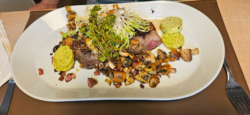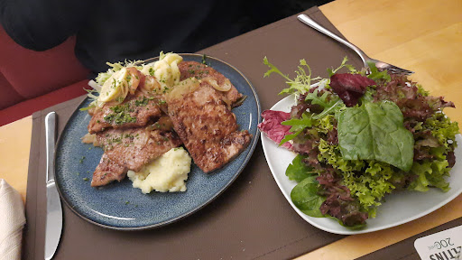 Read moreSchön anzusehen war die nicht zu überfüllte Karte. Im Zusammenspiel mit dem guten Ambiente kommt man schnell im Restaurant an. Die Gerichte haben durchweg überzeugt. Nur die Kroketten sind aus der Tiefkühltruhe, der Rest ziemlich gut selbst gemacht. Überzeugt haben die Salate mit überragendem Dressing. Einen Stern Abzug gibt es für die Menge. Auf Verdacht habe ich (die wirklich guten) Bratkartoffeln dazubestellt, ansonsten wäre es wohl eher knapp geworden. Irritiert hat die fehlende Getränkekarte. Sie ist weder in der Menükarte abgebildet, noch liegt sie extra aus. Da die Getränkebestellungen direkt nach dem Hinsetzen aufgenommen werden, muss man das nehmen, was man von anderen Restaurants kennt. Hier kann das Restaurant nicht hervorstechen. Grundsätzlich fängt die ordentliche Küchenleistung aber einiges auf. Der gute Gesamteindruck...